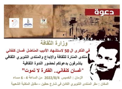 ***مداخلتي في ندوة "غسان كنفاني.. الفكرة لا تموت" التي أقيمت في نابلس يوم الخميس 04.08.2022 نظّمها منتدى المنارة للثقافة والإبداع والمنتدى التنويري الثقافي