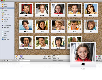 بحيث تقوم بكتابة اسم صاحب الوجه في الصورة وبعد أن تسجل عدة أسماء للصور يقوم البرنامج بتسجيل الصور الأخرى التي يرى أنها صور شبيهة وبذلك يفتح لك صفحة فيها أسماء كل الوجوه الموجودة في ألبوماتك مع أسمائها، وما عليك إلا النقر على اسم صاحب الصورة التي ترغب بفتحها لتظهر لك مجموعة الصور التي تضم فيها ذلك الشخص سواء كانت صورا منفردة أو جماعية.