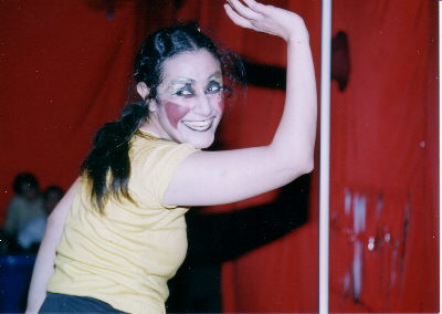تحتل الشخصية البهلوانية المشاهد الأولى في العرض وتستأثر بها, وهذا أيضاً له مغزاه, ربما كان الهدف منه خلق الحالة الشعورية العامة التي يتطلبها العرض كخطاب مسرحي فلسفي, فالبهلوان أو البلياتشو شخص يرتدي قناع من المكياج المبالغ فيه والذي يطمس هويته الحقيقية وهو لب العرض, فالشخصية تعترف بأنها ليست إنسان سوي, بأنها تُريد المصالحة مع نفسها, بأنها ترغب في أن تُصبح إنسان سوي.. لكن من هو الانسان السوي الذي تقتدي به؟. هل هو هتلر؟. أم موسيليني؟. أم صلاح جاهين؟. أم جريتا جاربو؟. أم خالتها أو عمتها أو من بالضبط؟!. في الطرح السابق والتعددية الاختيارية ينطوي الأمر على تأكيد النسبية مرة أخرى.