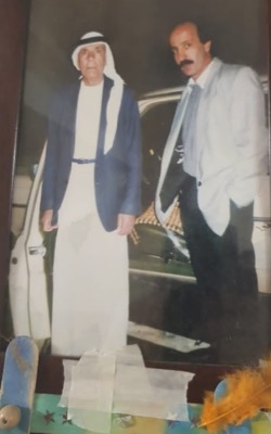 في الصورة المرحوم أبو محمد يونس يرتدي القنباز في اليرموك مع ابنه محمد.