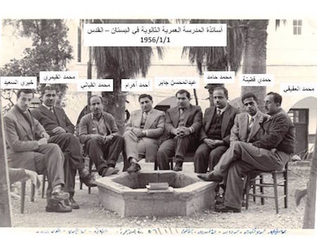 كان أول مدرس يدرسني اسمه الاستاذ وديع خميس، مسيحيا يسكن في سلوان (وادي حلوة) في تلك الفترة، وكان كبيرا في السن، ولكنه كان بشوشا وطويل البال معنا، ومنه بدأت أفك أول الحروف وإليه أدين بالشكر، والعرفان. رحمه الله وأسكنه فسيح جناته. لا أزال أذكر صفنا الأول الابتدائي، كان يقع في الجهة اليمنى من نهاية الساحة العلوية حيث يطل على شارع باب الغوانمة المؤدي للحرم الشريف.