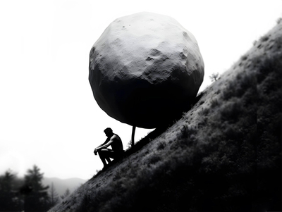 تدريجيًا في مُعاينة مُعطيات الواقع والتفكّر؛ يستنبط صخب العبثية في الوَعي الجمعي والسلوك الإنساني، وبغير إدراك أو به.. يهجر الضجيج وعالم البشر، ولا يُبالي استهلاك الحياة الآدمية. وبجانب صراعات الذات، يُصارع الدنيا أملًا في ملاذٍ آمن لعقله وفِكره، يحاول قدر استطاعته أن لا يرضخ لتيار يستنكره أو مسار يناهضه. أو منهجًا وهميًا لحياة أرض لا يشتهيها.