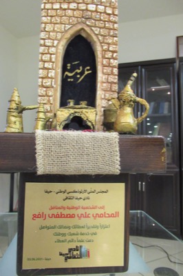 وسط حضور كبير ولافت ازدحمت به قاعة يوحنا المعمدان في حيفا يوم الخميس 03.06.2021 أقام نادي حيفا الثقافي حفلا تكريميا للأستاذ المحامي علي مصطفى رافع بدعوة من النادي، ومن المجلس الملّي الأرثوذكسي الوطني ورعايته، حيث جاء في نص الدعوة للتكريم " من أجل أن يستمر عبق البلاد في صدورنا نهجا وحياة ومن أجل المستقبل والحرية القادمة".