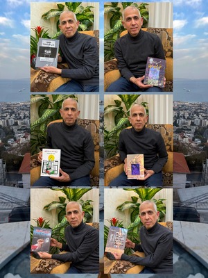 ومجموعتي القصصيّة "على شرفة حيفا" التي صدرت عن دار الرعاة للدراسات والنشر وجسور ثقافية، تتألف المجموعة من (38) قصة قصيرة وقصيرة جدا، تتناول موضوعات متعددة اجتماعية، وسياسية وطنية، وثقافية، جعلت من شخصية "حسين" شخصية رئيسية في أغلب هذه القصص، ويتولى القاص فيها سارد عليم بضمير "هو"، وصمم غلاف المجموعة صديقي ظافر شوربجي.