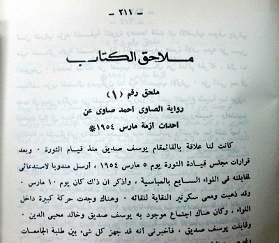 – الصور لغلاف الكتاب ولصفحتى 211 و212 من كتاب"الصراع الاجتماعى والسياسى فى مصر منذ قيام ثورة 23 يوليو 1952 إلى نهاية أزمة مارس 1954".