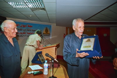 - الأديب الراحل/ محمد الماغوط ويتسلم الدرع ابن أخته الدكتور محمد بـَدُّور.
