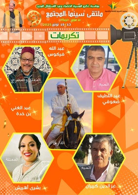 تكرم الدورة التاسعة لملتقى سينما المجتمع ببئر مزوي ـ خريبكة (دورة الممثل والمخرج عبد الله فركوس)، والتي تنظمها جمعية الشروق، بمناسبة ذكرى المسيرة الخضراء وعيد الاستقلال المجيد، من 13 الى 15 نونبر 2025، عدة فعاليات محلية إقليمية ووطنية تقديرا لعطاءاتها البارزة.