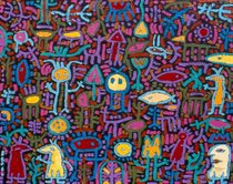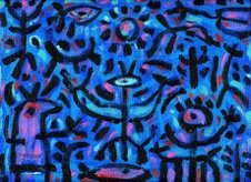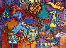 بالمقدس والمجهول ، مختزلا ما قدمتة تقافة كل تلك الشعوب من تصورات اتخذت اشكالا اسطورية ، تتشابه وتنسجم مع بعضها الى حد بعيد رغم التباعد الجغرافي والمثيولوجي ، وكأنها كلها تتحدث عن فعل مسحور وذاكرة طفولية واحدة .فالرمز عند الفنان ليس نقلا للمشاعر والافكار عن طريق الدلالة الوضعية المحددة كشكل حيواني او طير ما لكنها تتجه الى الايحاء بالمعنى العام ، فالرمز هنا له قيمة المتعة الذاتية بغض النظر عن الاهمية الاجتماعية مجسدا ذلك بهجة الحياة الطفولية والبدائية وفرحها مقابل الخطر والخوف الذي نواجهه في الحياة اليومية، وكما يوضح ذلك ( سيجموند فرويد ) بكتابه قلق في الحضارة فيقول (ان التخلي عن هذه الحضارة للعودة الى الحالة البدائية سيكفل لنا قدرا من السعادة اكبر بكثير ) .