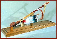 – القسم العلوي من رأس البافلو –سكالف- (انظر نموذج رقم خمسة) والبافلو حيوان مقدس لديهم (انظر نموذج رقم 6) ولكنه لا يعبد كما تتوقعون بل يقدسونه، فقد كانوا يعتمدون عليه في حياتهم حيث يأكلون لحمه ويستخدمون جلوده وعظامه وكان اعتمادهم عليه كبيرا جدا. وعلى أعلى رأس البافلو غليون طويل محشو بالميرمية الأمريكية ويوجد رزمة من الحشائش وقرون غزال وأشياء أخرى صغيرة. انظر نماذج من الغلايين المستخدمة والميرمية نماذج من 7 إلى 13.