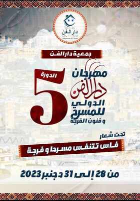 تستضيف مدينة فاس، فعاليات النسخة الخامسة من مهرجان دار الفن الدولي للمسرح وفنون الفرجة، وذلك أيام 28 و 29 و 30 و 31 دجنبر 2023، تحت شعار "فاس تتنفس مسرحا وفرجة".