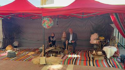 وفي محطّة أخرى عرضت تحت الخيمة الفلسطينيّة "المضافة" وفراشها المزركش بألوان النّسيج والتّطريز الفلسطينيّ والأدوات التّراثيّة من مستلزمات صنع القهوة وأدواتها، وأبرزها المهباج الّذي كان يستخدم لصنع القهوة "السّادة" والأباريق النّحاسيّة والفناجين المزيّنة بالتّصاوير المختلفة الألوان. كما ازدانت المدرسة بطلّابها ومعلّميها الّذين تزيّنوا بارتداء الأزياء الفلسطينيّة الفلّاحيّة والقرويّة، وبخاصّة باعتمار الكوفيّات الوطنيّة المتعدّدة الألوان، لقد جعل كلّ ذلك المشهد البهيج ذلك اليوم يومًا فلسطينيًّا بامتياز وروعة منقطعة النّظير.